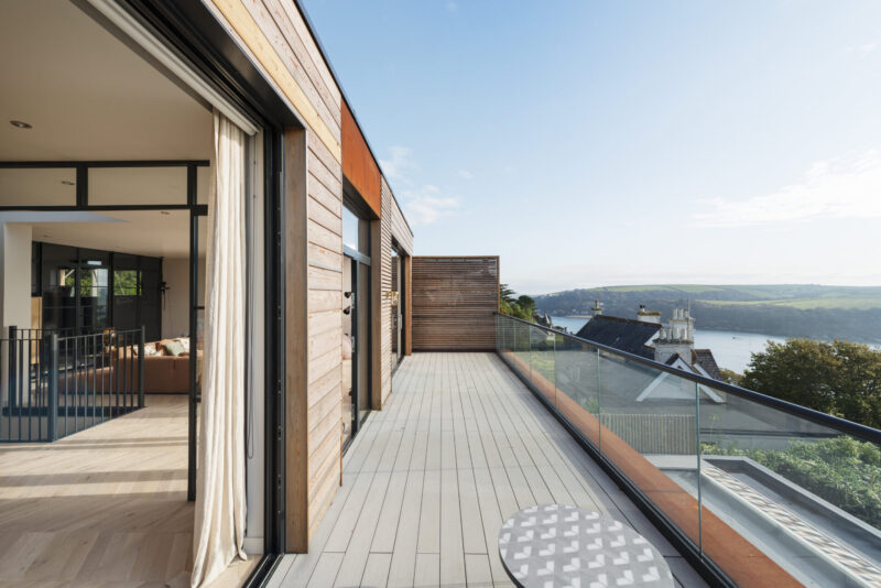 Beechwood is a replacement dwelling situated on a steeply sloping site overlooking the Salcombe estuary, South Devon. The design looked to maximise the connection with and views out to the surrounding landscape and coast. Large sliding doors to the south elevation allow the outside space to become part of the living experience.