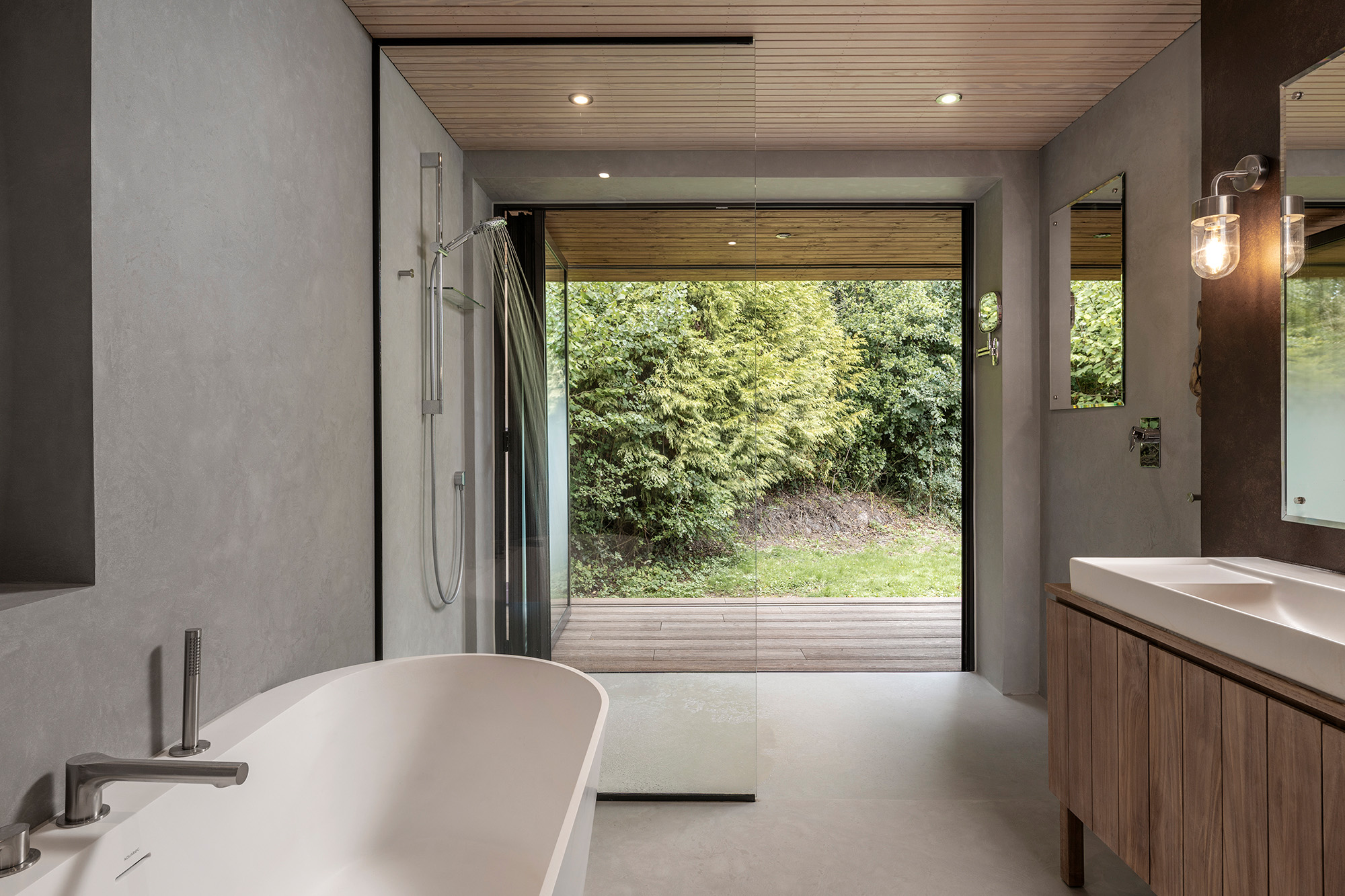 Materially, the house is rooted in its local context, using a palette of colours and finishes that are appropriate to the area while clearly expressing its contemporary character. Mature trees envelop the site, helping to screen and further embed the house in its natural setting.
